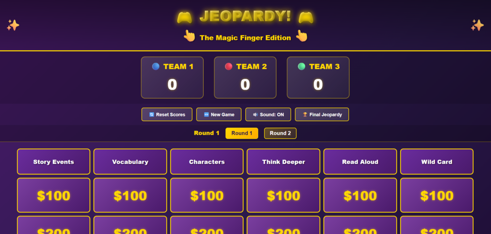 Engage your learners with this high-energy Magic Finger Jeopardy game — a fully interactive, animated HTML game you can open instantly in any browser. No installation. No add-ons. Just click and teach.