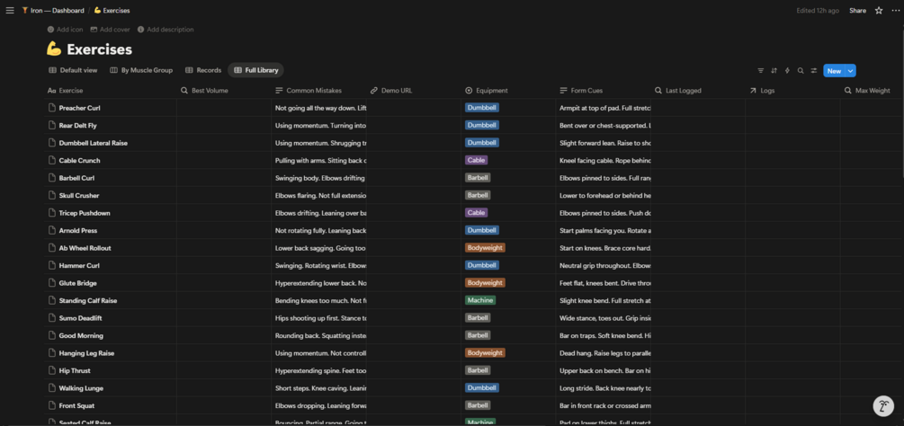 Iron — Notion Workout Tracker | 50+ Exercises, PR Tracking, Periodization