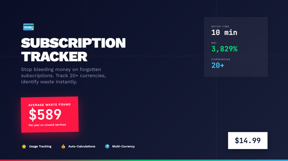 π³ Subscription Tracker β Stop Wasting $300-600/Year on Forgotten Services (Notion Template)